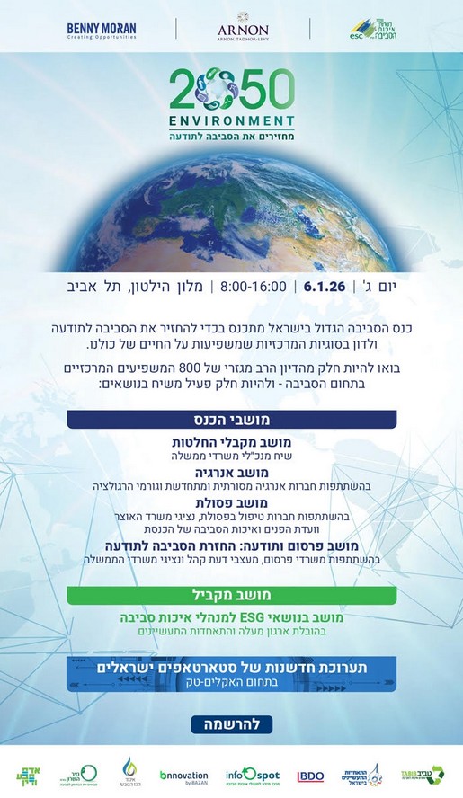 מעוניינים להציג בכנס סביבה 2050? לחצו כאן לפרטים