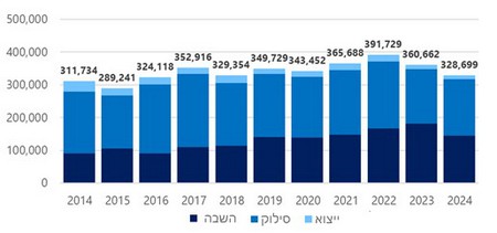 כמות פסולת מסוכנת שמטופלת בישראל 2014–2024