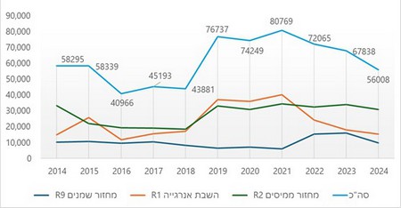 לפי נתוני הדוח, בשנת 2024 טופלו 328,699 טון פסולת מסוכנת שנוצרה בישראל (כולל פסולת שהועברה לייצוא), ירידה בשיעור של כ-9% (כ-32,000 טון) בכמות הפסולת המטופלת בהשוואה לשנת 2023. מדובר בהמשך של מגמת הירידה שהחלה בשנת 2023 לאחר תקופה ארוכה של גידול בכמות הפסולת.