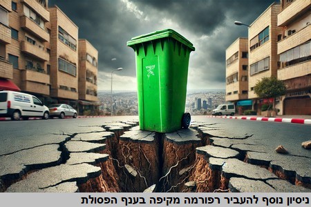 בינתיים משבר הפסולת בישראל רק הולך ומחריף: מדוח מעקב של מבקר המדינה שבדק את ענף הטיפול בפסולת עירונית, עולה בין השאר שנפח ההטמנה צפוי להיגמר עוד לפני סוף 2026. אותו דוח מתח גם ביקורת על כך שהרפורמה בענף אינה מתקדמת.
