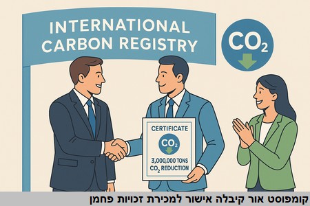 חברת קומפוסט-אור קיבלה אישור להנפקה ולמכירה של תעודות פחמן בהיקף מצטבר של כ־3 מיליון טון CO2e הנגזרים מפעילותה בתחום הטיפול בבוצת מט"שים וגזם עירוני. האישור התקבל ממרשם זכויות הפחמן הבינלאומי ICR. בחברה אומרים כי ההכרה מהווה אבן דרך משמעותית וממצבת את החברה כמובילה בתחום של הפחתת פליטות גזי חממה מטיפול בפסולת.