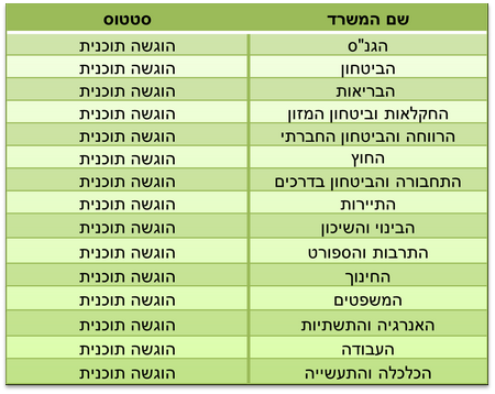 רשימת המשרדים הממשלתיים שהגישו תוכנית היערכות לשינוי אקלים