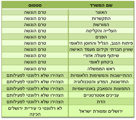 רשימת המשרדים הממשלתיים שלא הגישו תוכנית היערכות לשינוי אקלים