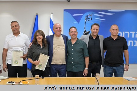 בטקס חגיגי שנערך בשבוע שעבר בנוכחות בכירים מהמשרד להגנת הסביבה העניק מנכ"ל תאגיד מאי דותן קבק לעיריית אילת ולעומד בראשה אלי לנקרי תעודת הצטיינות על ההישג המרשים.