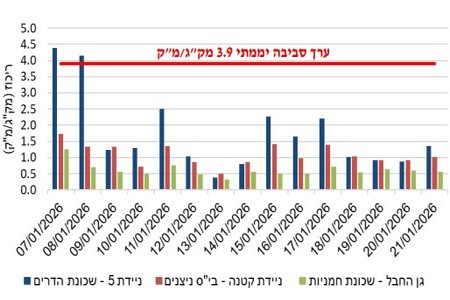 כאמור, כעת המשרד להגנ"ס מפרסם את הנתונים שנאספו במהלך חודש ינואר ב-3 תחנות הניטור שהוצבו בשוהם.