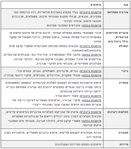 דוגמאות לעיסוקים חדשים ומשתנים לפי ענף: