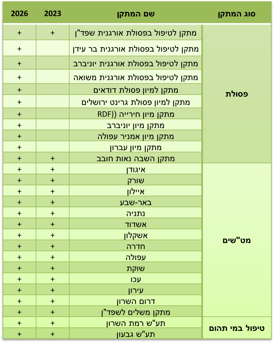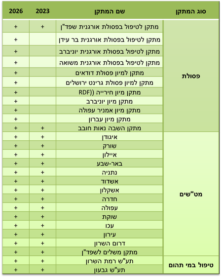 רשימת מיזמי תשתית חיוניים: מט"שים, מתקני טיפול במי תהום ומתקני פסולת (03.2026)