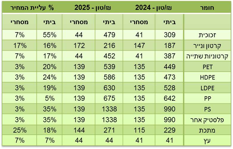 קישור למחירון דמי הטיפול של תאגיד מיחזור האריזות תמיר לשנת 2025 מופיע בתחתית הכתבה.