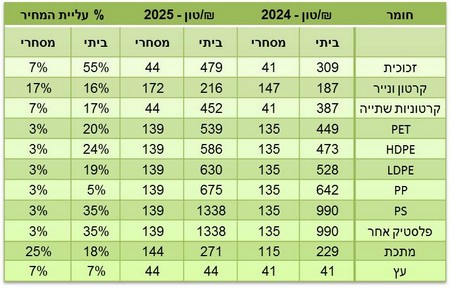 להלן טבלה המפרטת את המחירים ב-2024 ו-2025, במגזר המסחרי והביתי: