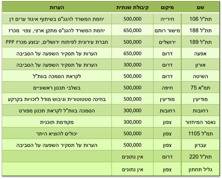 לצד זה הוצגה גם רשימת מתקני הטיפול בפסולת אורגנית הנמצאים בשלבי הקמה שיטפלו בעוד 26% מהפסולת האורגנית (כ-636,000 טון):