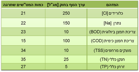הדוח גם מציג את החריגות בריכוז מזהמים בקולחין שנמצאו בדיגומים שנעשו במט"שים הגדולים לאורך שנת 2021. החריגות הרבות ביותר נמצאו במוצקים מרחפים (TSS) ובחנקן כללי (TN), מהם 40% מהמט"שים חרגו. להלן תמצית החריגות: